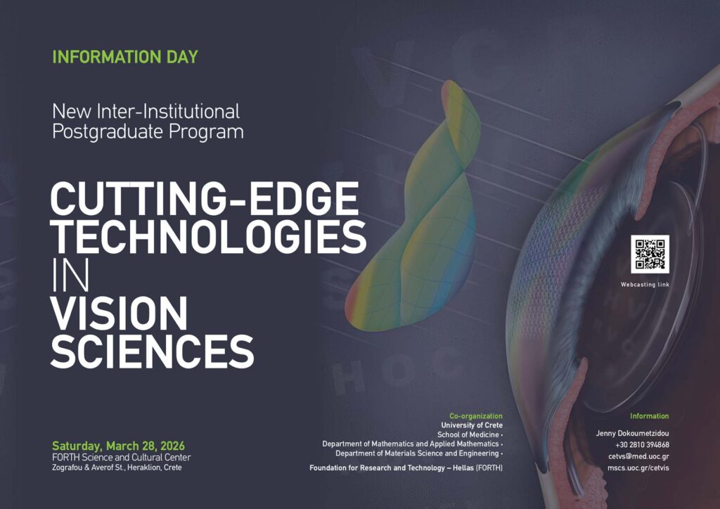 Information Day – Join us!When:Saturday March 28, 2026Where:FORTH Science & Culture Center, Zografou & Averof Str, Heraklion, CreteLive streaming available: https://uoc-gr.zoom.us/j/81406013153?pwd=Na7dkI0BefbN8ykkxEc8zJnbY15lxJ.1 Discover our new MSc: Cutting-Edge Technologies in...